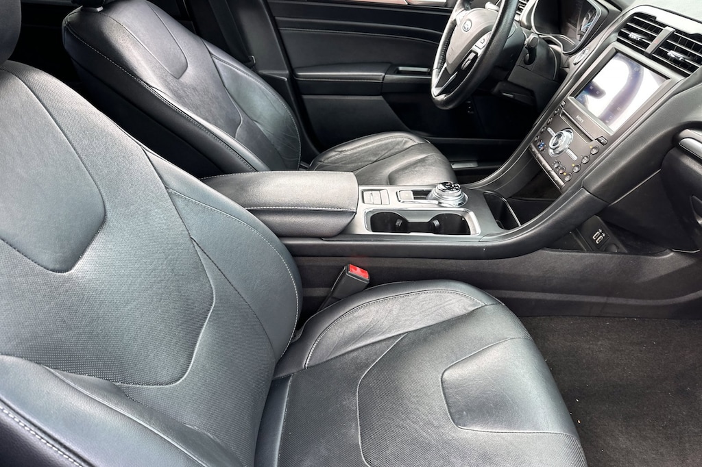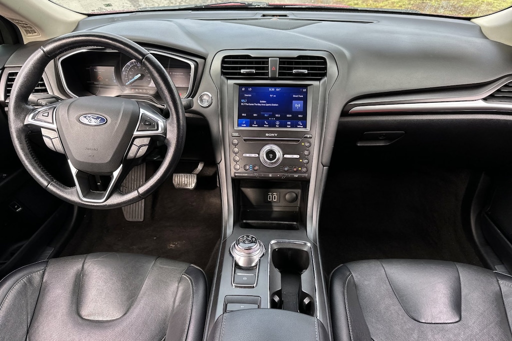 Pure practicality in a stylish package. This 4 door, 5 passenger sedan still has less than 80,000 miles! Ford infused the interior with top shelf amenities, such as: front fog lights, power door mirrors and heated door mirrors, and power seats. Smooth gearshifts are achieved thanks to the efficient 4 cylinder engine, and for added security, dynamic Stability Control supplements the drivetrain.